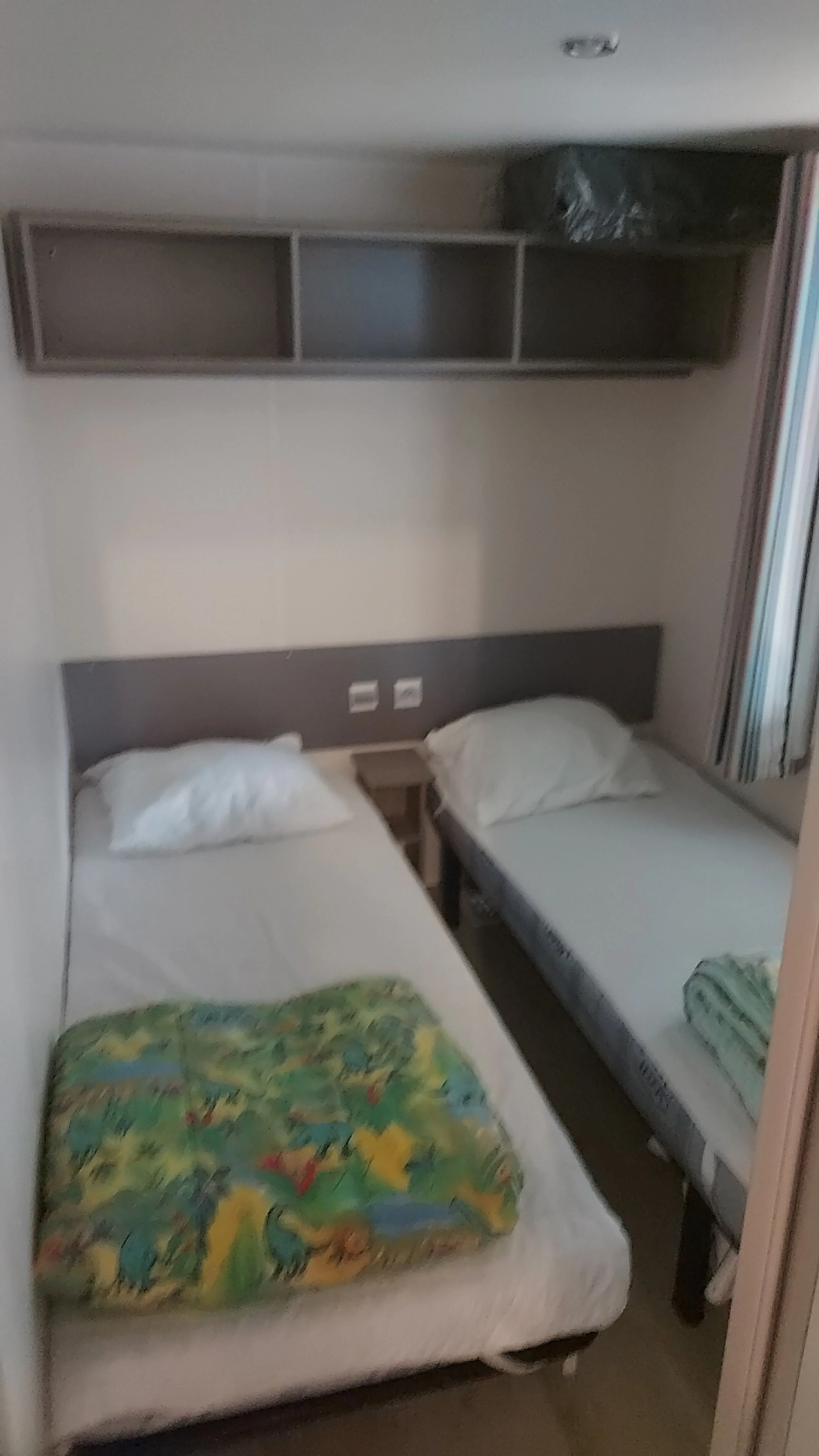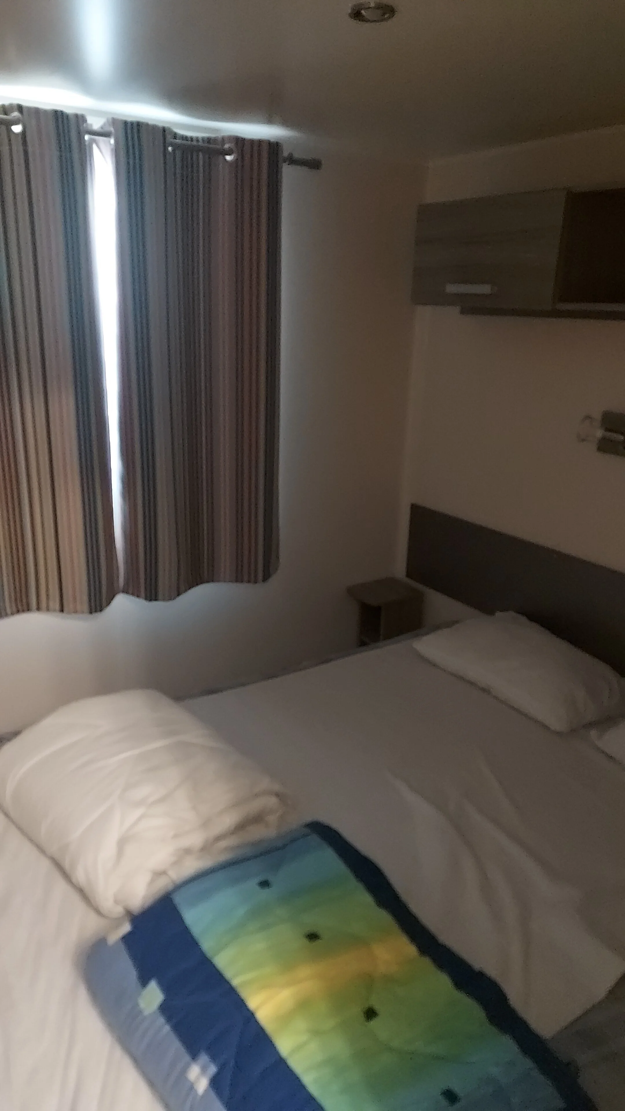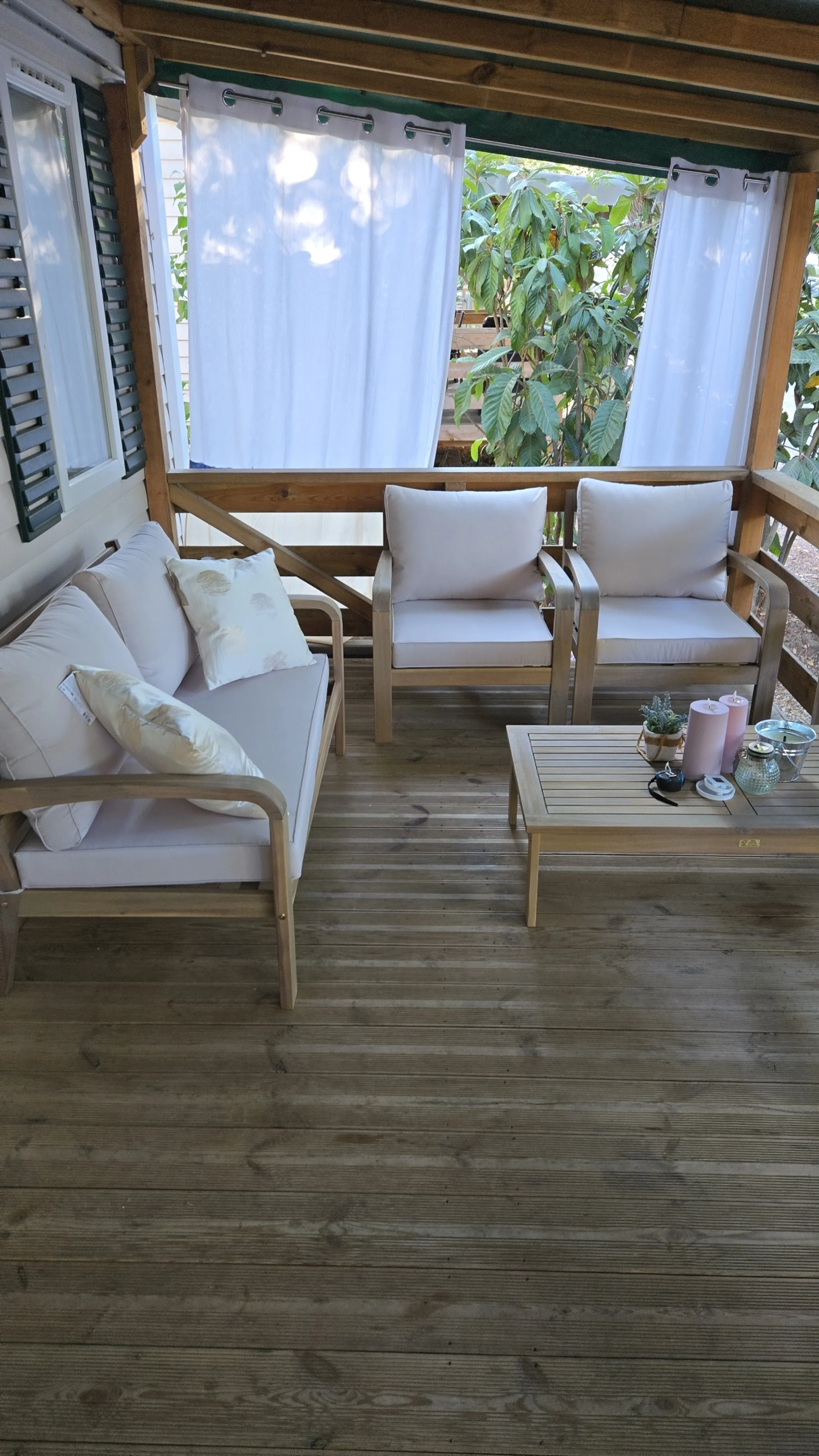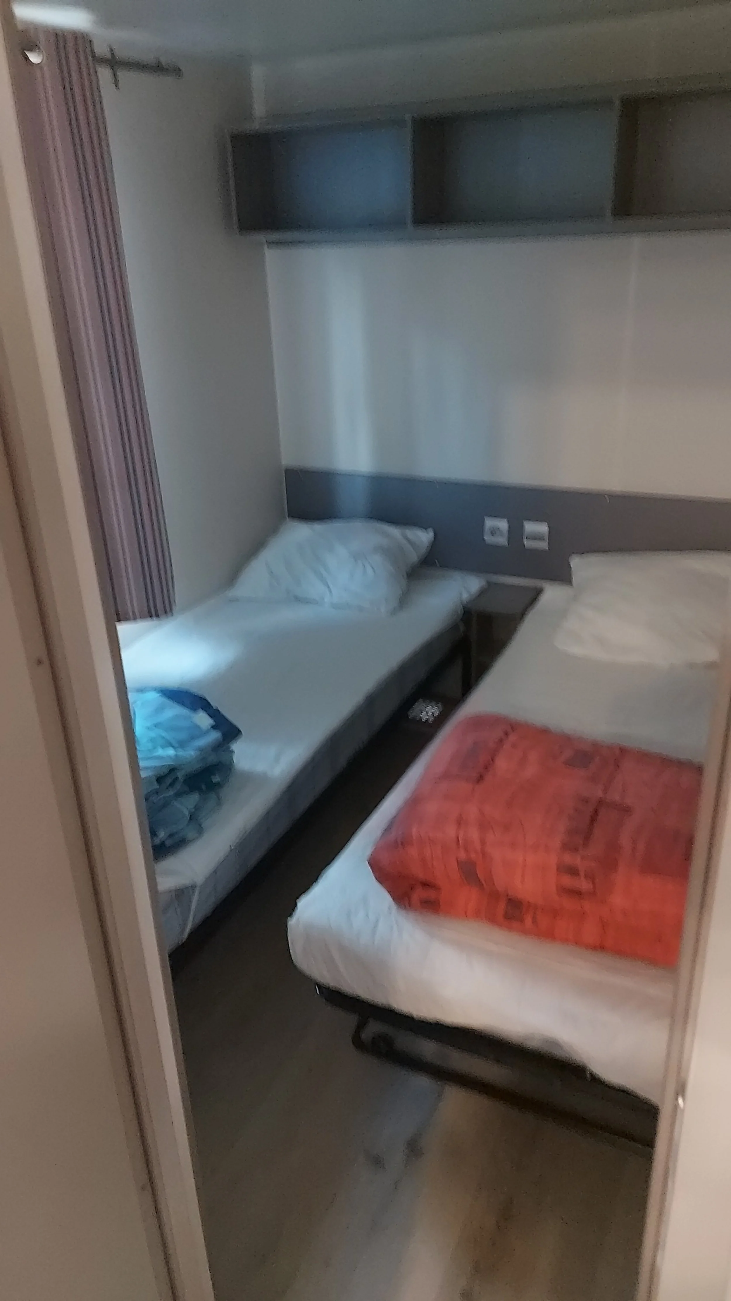 Het ligt in een rustig straatje, op korte loopafstand van de receptie, het zwembad en het winkeltje. Alles is binnen handbereik!Buiten vind je een ruim terras met een comfortabele loungeset én eethoek — de perfecte plek om te genieten van lange zomerdagen en zwoele avonden. Dankzij de ruimte zit je elkaar niet in de weg en voelt het als een echte uitbreiding van de leefruimte.Binnen is het chalet van alle gemakken voorzien:Volledig uitgeruste keuken3 slaapkamers met goede beddenApart toiletBadkamer met douche en wastafelAirconditioning (ook fijn tijdens warme zomers!)Ook binnen is het prettig verblijven — een fijne plek om je terug te trekken na een dag zon, zee en avontuur.